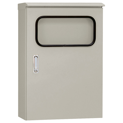 TOP > 分電盤・ボックス > 鋼板製ボックス > 窓付屋外用制御盤キャビネット(水切構造、防塵・防水パッキン付)