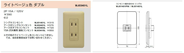 | 商品名 | WJ03410L|ライトベージュ色 15A・20A共用 接地コンセント |